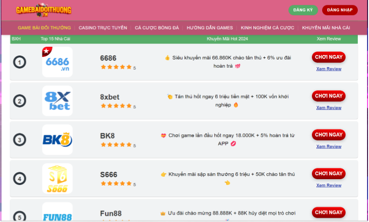 Game bài đổi thưởng là trang chuyên đánh giá khách quan về các nhà cái nhằm giúp bet thủ tìm được sân chơi phù hợp nhất. Tính…